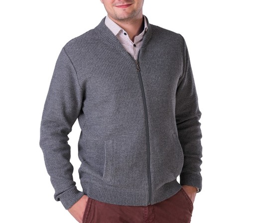 Modny sweter męski rozpinany zamek - SZARY/POPIELATY.