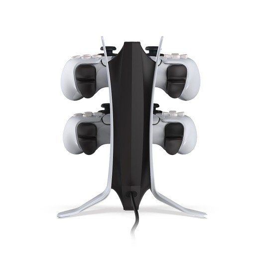 Stacja jest doskonale wyważona, dzięki czemu nie musisz się obawiać, że się przewróci bez względu na to czy podłączysz do niej jednego czy dwa pady. Kształt uchwytów jest doskonale dopasowany do kształtu pada DualSense, dzięki czemu będzie spoczywał on stabilnie na stacji. Na spodzie ładowarki znajdują się cztery, zakończone miękkim materiałem nóżki, dzięki czemu nie niszczą one powierzchni, na której stoją. Stylowy wygląd stacji doskonale komponuje się z designem konsoli.