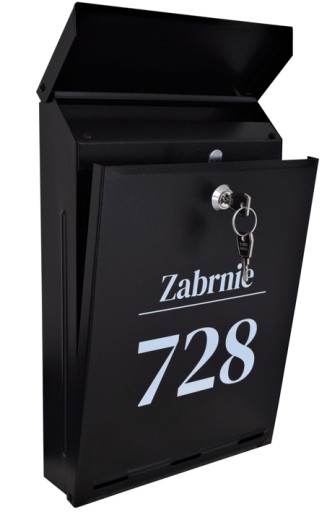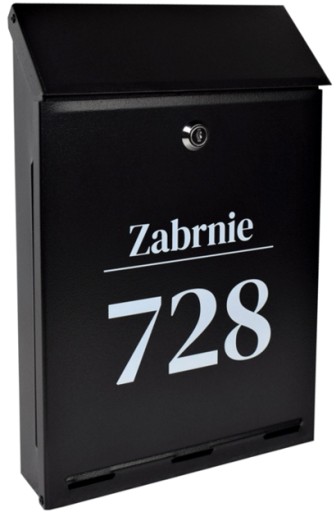 W przypadku podania tylko samego NAPISU, domyślnie wybieramy kolor skrzynki Czarny mat, z wzorem A01. (jak na zdjęciu głównym)