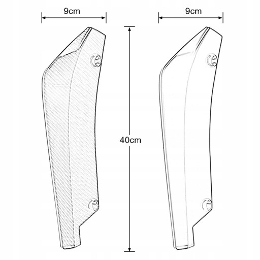 W zestawie dwie nakładki pod tylny zderzak imitujące wygląd karbony, z gładkim i precyzyjnym wykończeniem krawędzi idealnie pasują do Twojego samochodu