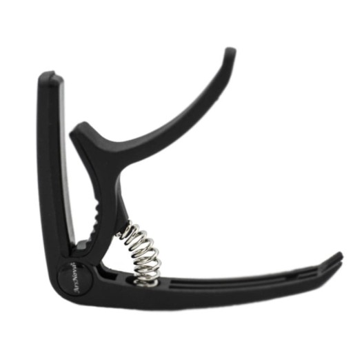 Niewielki ścisk mechaniczny montowany jest bezpośrednio na gryfie gitary. Sposób zakładania jest bardzo prosty. Kapodaster należy rozchylić i wsunąć na gryf. Produkt wewnątrz został pokryty gumową wkładką, która przyciska struny do gryfu tak, by zabezpieczyć podstrunnicę.