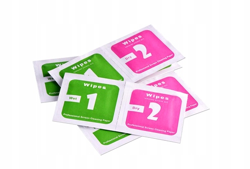 1x Ściereczka nr 1 (wet) nasączona alkoholem - do odtłuszczenia ekranu