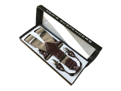 W tej aukcji do wyboru są dostępne szelki w kolorach: czarny, beżowy, brązowy, granatowy, wzór, czerwony, biały, popiel.