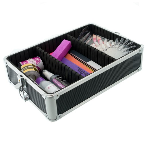 - część druga: 33 x 22 x 7cm- wyposażona w gąbkowe wypełnienie z miejscami na 40 stojących lakierów;