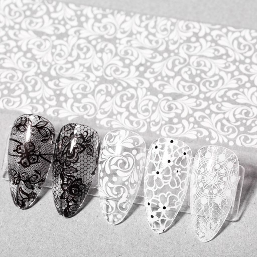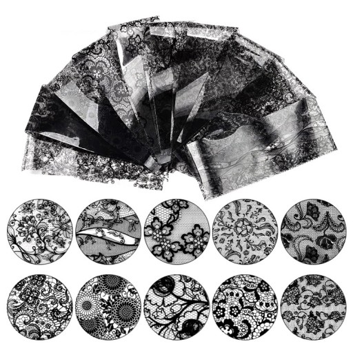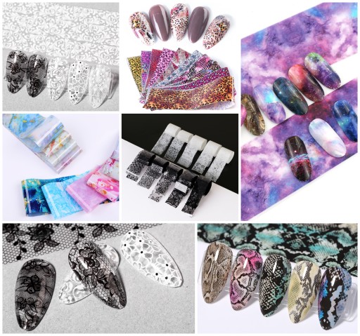 Różne rodzaje folii do wyboru: koronkowe, zwierzęce, kwiatowe, abstrakcyjne.