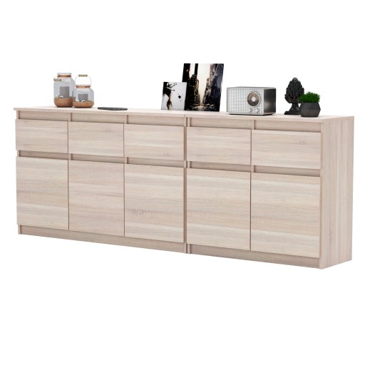 SONOMA/WHITE комод 5 ящиков 5 дверей Большой комод 200 см КОМПЛЕКТ для гостиной
