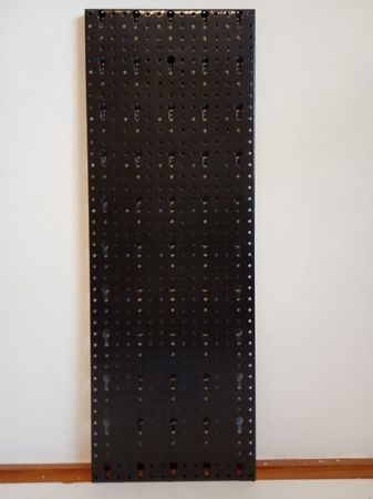 Płyty perforowane dostępne w kolorze szarym, czarnym niebieskim lub czerwonym o wymiarach 225x630x15 mm. Płyty lakierowane metodą proszkową w naszej malarni, posiadają zamaskowany uchwyt montażowy do ściany. Grubość blachy to 0,8 mm perforacja co 10 mm zarówno w poziomie jak i w pionie. Waga jednej płyty to ok 0,9 kg.