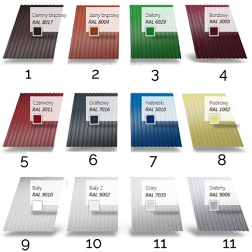 DOSTĘPNE KOLORY BLACHY Z PALETY RAL W MATOWYM AKRYLU LUB POŁYSKU DO WYBORU