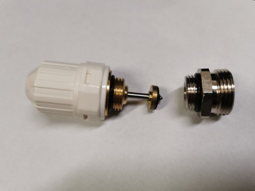 - Po odkręceniu białego pokrętła można zastosować siłownik termoelektryczny, który będzie automatycznie regulował przepływ wody