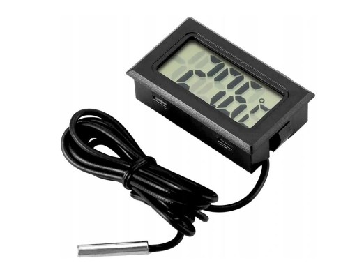 Niewielkich rozmiarów cyfrowy termometr elektroniczny, wyposażony w sondę z przewodem pozwoli zmierzyć temperaturę np. w akwarium, w domu, lodówce, zamrażalce, wędzarni, na zewnątrz samochodu oraz wielu innych miejsc. Sonda pomiarowa jest wodoodporna i pozyskuje pomiary w zakresie od -50°C do 110°C.