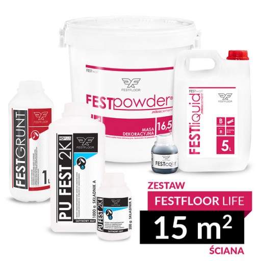 Zamawiając ten system otrzymasz gotowy zestaw niezbędnych produktów do wykonania 15 m2 ściany FESTFLOOR Life.