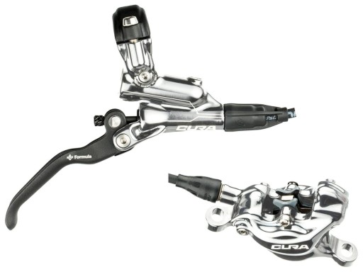 Cura to nowy rozdział w historii hamulców Formula która jako pierwsza na świecie w 1993 roku przedstawiła tarczowy hamulec o nazwie Evolution do rowerów górskich. Obecnie jest to nowoczesna kuta(!) konstrukcja z dwoma dużymi tłoczkami o średnicy 24mm. Hamulec ten jest niesamowicie uniwersalny znajdując zastosowanie w XC, AM, EN i DH.