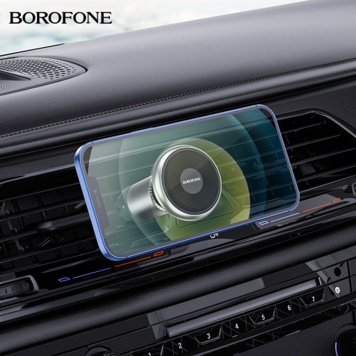 BOROFONE BH47 Cool move to zwiększający bezpieczeństwo jazdy, mocny i stabilny, uchwyt magnetyczny na Twój telefon, wyposażony w duży, regulowany za pomocą 360 stopniowej rotacji magnes, mocowany do kratki wentylacyjnej pojazdu za pomocą silikonowego zacisku oraz posiadający dodatkowy, dokręcany na gwincie ścisk ramion umieszczonych w kratce pojazdu co powoduje maksymalnie mocne trzymanie uchwytu we właściwym położeniu i blokuje możliwość wypadnięcia uchwytu z miejsca montażu.