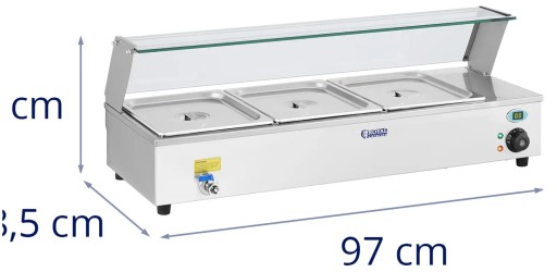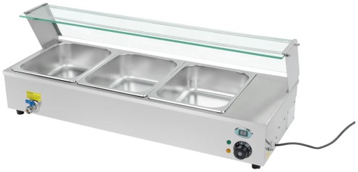 To urządzenie gastronomiczne cechujące się nowoczesnym wzornictwem i solidną obudową. Tego typu bemary doskonale sprawdzają się jako wyposażenie kuchni w kawiarniach, cukierniach, restauracjach, barach, stołówkach, jadłodajniach, kantynach, jak również w różnych sklepach spożywczych. Bemar z osłoną to profesjonalny sprzęt stosowany do przechowywania i utrzymywania wysokiej temperatury, gotowych już potraw.