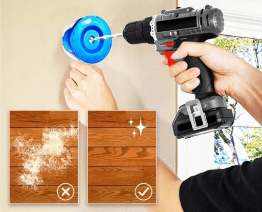- Bardzo łatwy w użyciu - wystarczy przełożyć wiertło przez otwór wewnątrz odpylacza.