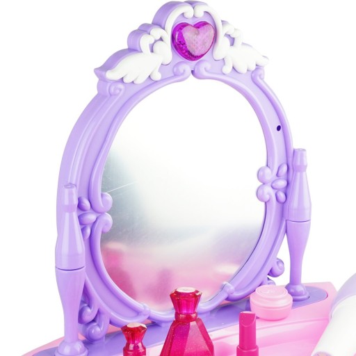 W toaletce zostało zamontowane bezpieczne lustro, którego nie da się zbić. Nad lustrem znajduje się śliczne serduszko, które po uruchomieniu świeci pięknym różowym światełkiem. Z toaletki wydobywa się również miła dla ucha muzyka, oraz na lusterku wyświetla się hologram księżniczki.