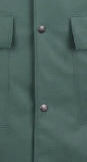 Płaszcz zapinany na napy, z kapturem i dwiema bocznymi kieszeniami przykrytymi patkami. Model produkowany z wodoochronnej tkaniny powlekanej Plavitex.