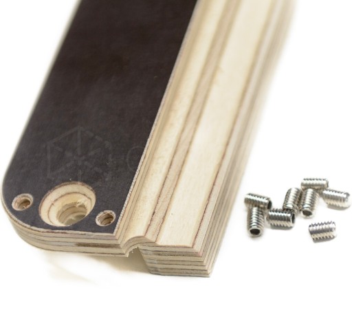 W najnowszej wersji wkładki dodano dodatkowe otwory z gwintem M4, które umożliwiają (za pomocą śrub dociskowych) dokładne wypoziomowanie z oryginalnym blatem.