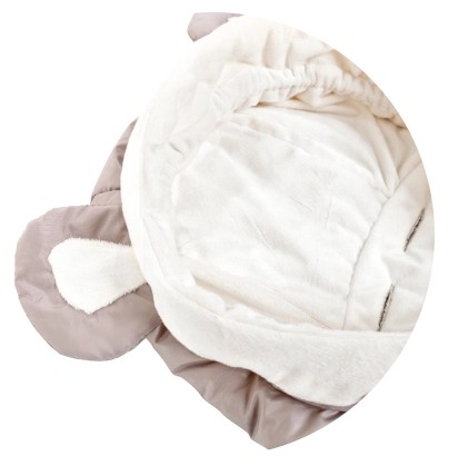 Uroczy dodatek w formie uszek wyróżnia śpiworek dla tle konkurencji. Wykończenie kapturka jest delikatne, przyjemne w kontakcie ze skórą twarzy.
