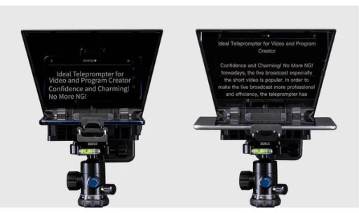 Idealny teleprompter do tworzenia wideo i programów. Można na nim wyświetlać za pomocą smartfona lub tabletu podczas nagrywania lustrzanką cyfrową, bezlusterkowcem lub smartfonem. Pozwala wyraźnie czytać przewijający się tekst, patrząc bezpośrednio w kamerę.