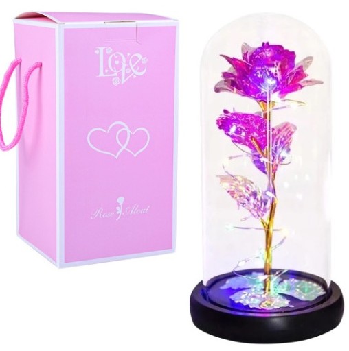 WIECZNA RÓŻA W SZKLE ŚWIATEŁKA LED flower box rose