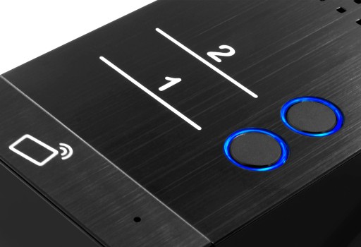 Niebieskie podświetlenie zapewnia dobrą widoczność przycisków wywołania nawet po zmroku.