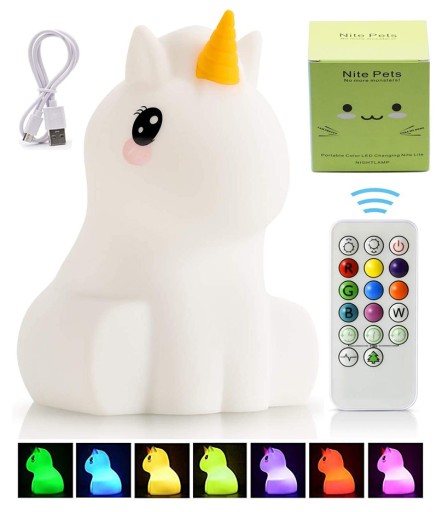 LAMPKA NOCNA JEDNOROŹEC RGB KOLOROWA ZENWIRE SILIKONOWA+ PILOT + KABEL MICRO USB W ZESTAWIE