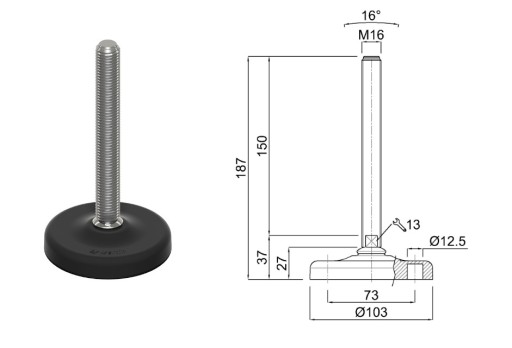 ПОКАЧАЮЩАЯСЯ НОПА СТАНКА FI 103 M16x150 ПОЛИАМИД/ЦИНКОВАНИЕ