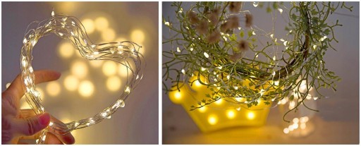 Bardzo dyskretne lampki, którymi możemy ozdobić dosłownie wszystko, bez obaw, że będą ciążyć, ponieważ są zasilane trzema malutkimi bateriami, stąd też całość jest leciutka i łatwo można ją ukryć wszędzie.