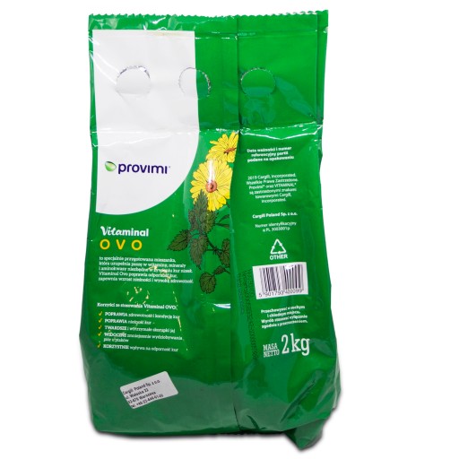 Vitaminal OVO to specjalnie przygotowana mieszanka która uzupełnia pasze w witaminy minerały i aminokwasy niezbędne w żywieniu kur niosek. Vitaminal Ovo poprawia odporność kur, zapewnia wzrost nieśności i wysoką zdrowotność.