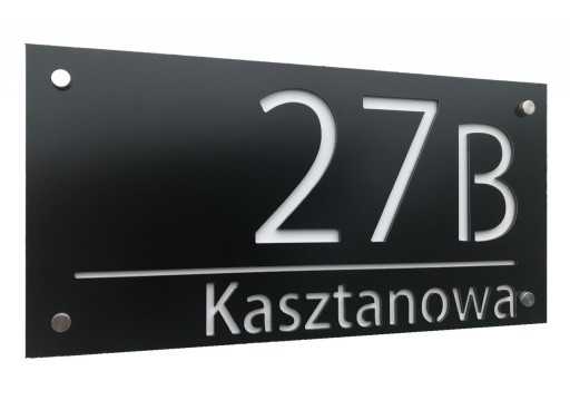 - Tabliczka wykonana jest z płyty kompozytowej (aluminiowej) typu dibond 3mm (czarny mat tło) oraz napisy/cyfry z (białej połysk) 3mm