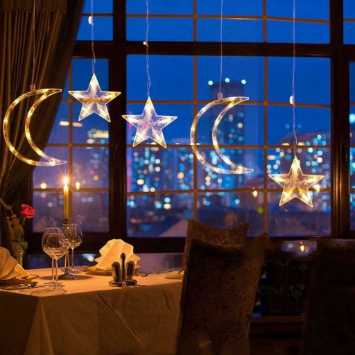 Na girlandę składa się 12 elementów świecących: 3 duże księżyce, 3 duże gwiazdy i 6 małych gwiazdek.