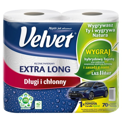 Бумажное полотенце VELVET EXTRA LONG, 2 РОЛИКА