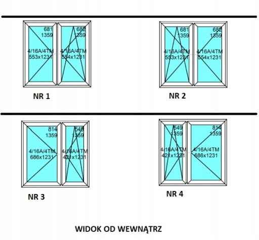 - Symetryczne RU+R (1/2Rozwierno Uchylne + Rozwierne1/2)