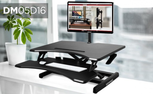 - DM05D1 - Dostosowanie wysokości: 165-415 mm, rozmiar blatu: 920 x 550 mm, dodatkowa platforma na myszkę i klawiaturę;