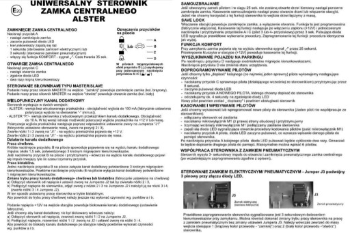 POLSKI UNIWERSALNY STEROWNIK CENTRALNEGO ZAMKA „ALSTER” z pilotami typu Scyzoryk