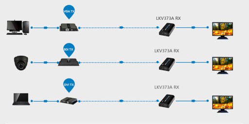Urządzanie doskonale nadaje się do podłączenia tunera satelitarnego, odtwarzacza DVD, komputera czy konsoli do odbiornika oddalonego od urządzeń. Do telewizora należy doprowadzić tylko jedną skrętkę komputerową co ułatwia instalacje urządzenia oraz poprawia wygląd instalacji telewizora zawieszonego na ścianie przy pomocy uchwytu LCD. Zestaw nadaje się zarówno do jednopunktowego jak i wielopunktowego podłączenia, dzięki czemu urządzenie jest bardzo uniwersalne. UWAGA! Zestaw zawiera nadajnik i odbiornik do podłączenia jednopunktowego. Aby przesyłać sygnał wielopunktowo, musimy dokupić odbiorniki RX, dostępne w naszej ofercie.