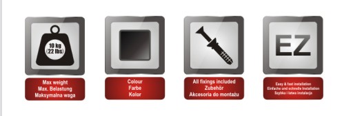 Idealnie nadaje się do montażu dekoderów satelitarnych, odtwarzaczy DVD, konsoli gier video itp.