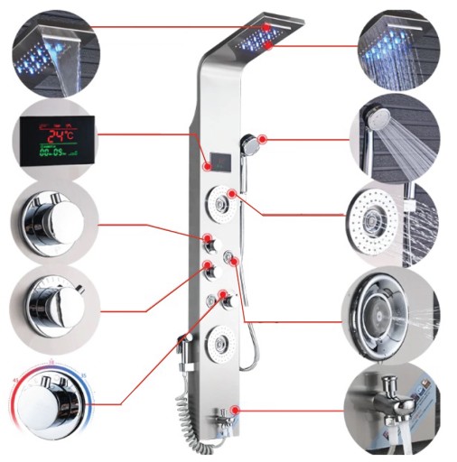 Ten wspaniały wielofunkcyjny panel z deszczownicą i hydromasażem zawiera wszystkie niezbędne elementy do montażu w Waszej łazience, pokoju kąpielowym czy prywatnym SPA.