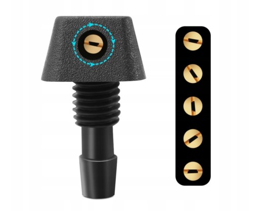 Dysze posiadają możliwość pełnej regulacji strumienia (360 stopni). Aby dokonać zmiany kierunku rozpylanego płynu należy przekręcić śrubę regulującą. Dodatkowo istnieje możliwość regulacji regulację kąta nachylenia. W celu prawidłowego podłączenia polecamy uniwersalny wężyk i złączki. Maksymalna średnica wężyka to 8 mm.