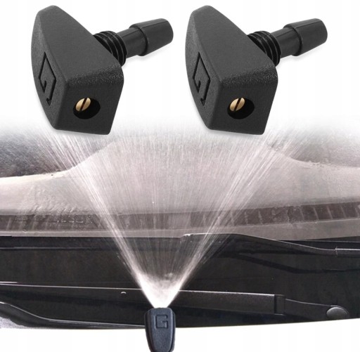 Zestaw 2 dysz mgłowych, spryskiwaczy wraz z uszczelkami i nakrętkami mocującymi. Produkt wysokiej jakości idealnie sprawdzający się jako zamiennik fabrycznych instalacji. Posiadają specjalne otwory, dzięki którym sterujemy szerokością strumienia wypychanej cieczy oraz kątem nachylenia. Produkt cechuje szeroka kompatybilność, pasuje do większości samochodów autobusów, ciężarówek, autokarów itp.