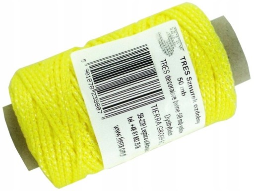 SZNUREK OZDOBNY DEKORACYJNY ŻÓŁTY