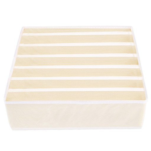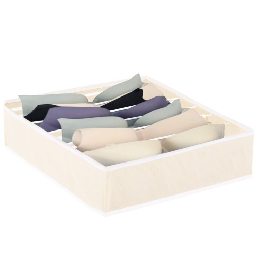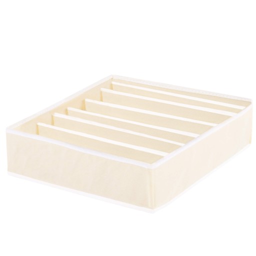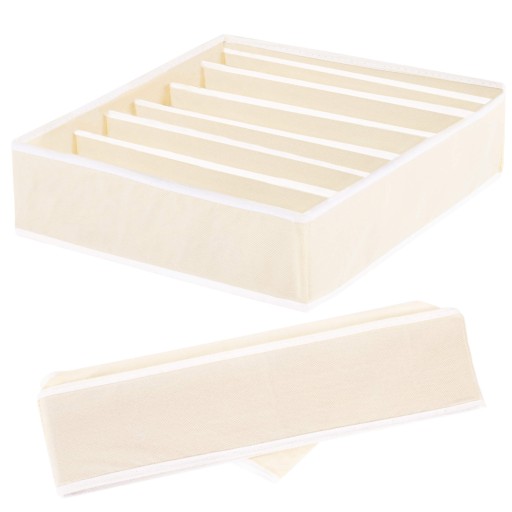 Produkt wykonany z trwałej włókniny. Usztywnione boczne ścianki organizera sprawiają, że konstrukcja staje się stabilna i nie odgina się. Organizer z siedmioma przegródkami świetnie sprawdzi się w szufladach, porządkując różne niewielkie elementy.