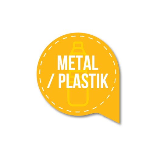 Naklejka informacyjna wykonana z foli samoprzylepnej na kosz do segregacji odpadów.