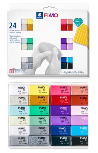 НАБОР МЯГКОЙ ПЛАСТИКОВОЙ ПАСТЫ FIMO, 24 ЦВЕТА. ЭФФЕКТ