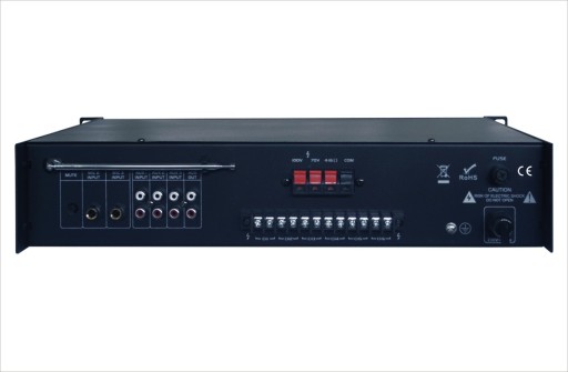 Wzmacniacz radiowęzłowy uniwersalny znajdujący swoje zastosowanie jako zasilanie systemów nagłośnienia we wszystkich obiektach użyteczności publicznej, hotelach, restauracjach, urzędach, handlowych oraz sakralnych. Nowoczesna jednostka nagłośnieniowa z odtwarzaczem MP3 oraz tunerem FM. Duża moc wyjściowa oraz wyjście z podziałem na 6 niezależnych stref głośników pozwala na zasilanie systemów nagłaśniających duże powierzchnie. Wejścia: 3 x MIC (MIC z funkcją priorytetu), 3 x AUX, wbudowany odtwarzacz MP3 - dane z zewnętrznej pamięci USB lub karty SD. Łącze Bluetooth do urządzeń wyposażonych w profil A2DP np. telefon komórkowy. Wskaźnik poziomu sygnału wyjściowego MASTER VOLUME LED, wspólna korekcja tonów niskich i wysokich. Całość z możliwością zdalnego sterowania.