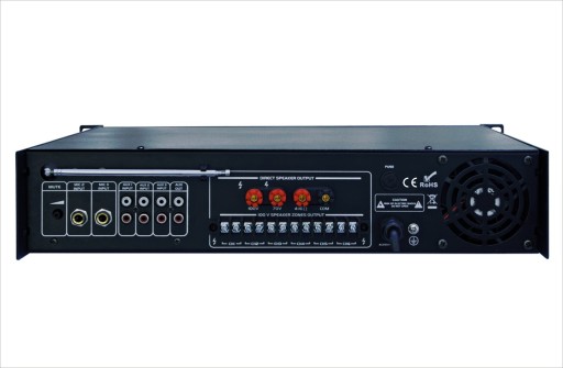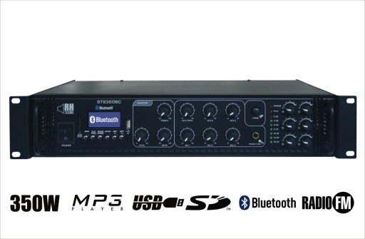 Wzmacniacz radiowęzłowy uniwersalny znajdujący swoje zastosowanie jako zasilanie systemów nagłośnienia we wszystkich obiektach użyteczności publicznej, hotelach, restauracjach, urzędach, handlowych oraz sakralnych. Nowoczesna jednostka nagłośnieniowa z odtwarzaczem MP3 oraz tunerem FM. Duża moc wyjściowa oraz wyjście z podziałem na 6 niezależnych stref głośników pozwala na zasilanie systemów nagłaśniających duże powierzchnie. Wejścia: 3 x MIC (MIC z funkcją priorytetu), 3 x AUX, wbudowany odtwarzacz MP3 - dane z zewnętrznej pamięci USB lub karty SD. Łącze Bluetooth do urządzeń wyposażonych w profil A2DP np. telefon komórkowy. Wskaźnik poziomu sygnału wyjściowego MASTER VOLUME LED, wspólna korekcja tonów niskich i wysokich. Całość z możliwością zdalnego sterowania.