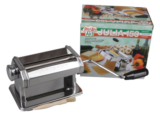 Wszystkie maszyny do makaronu wykonane są ze stali chromowanej, wykonane są w najwyższym standardzie i są doskonałej jakości. Dzięki maszynom rolkowym Julia 150 można równomiernie rozwałkować dowolne ciasto na żądaną grubość (7 stopni) i długość do szerokości 15 cm, które można przetwarzać na makarony, ciasta, ciasta, torty itp.