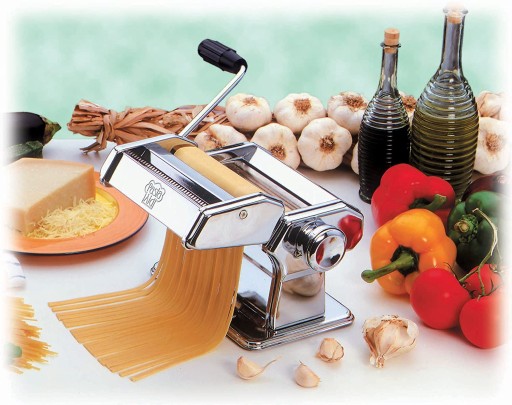 Klasyczne, ręczne urządzenie do robienia domowego makaronu. Mechanizm maszynki wykonany jest z wysokiej jakości anodowanego stopu aluminium - bezpiecznego przy kontakcie z żywnością, nie zawierającego metali ciężkich. Pozostałe części wykonano ze stali nierdzewnej. Gumowe, antypoślizgowe podstawki oraz zacisk do unieruchomienia maszynki na blacie/stole, sprawiają, że jej używanie jest bardzo proste i wygodne. Maszynka jest łatwa w czyszczeniu, jednak nie zaleca się myć jej w zmywarce.