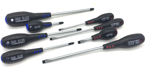 - wkrętaki płaskie i krzyżakowe PH z serii D04 Jonneswsay - precyzyjnie wykonane z wysokogatunkowych materiałów na Tajwanie - z przeznaczeniem do profesjonalnego zastosowania w warsztatach motoryzacyjnych i serwisach naprawczych